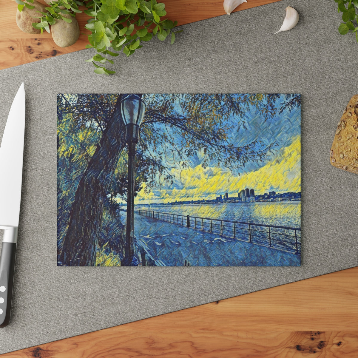 Bring a touch of glass into any kitchen with this cutting board. Its tampered glass material is robust and helps prepare many a tasty meal for a long time to come. The textured surface makes it ideal for slicing, dicing or chopping. Available in two sizes: 8" x 11" and 11" x 15".